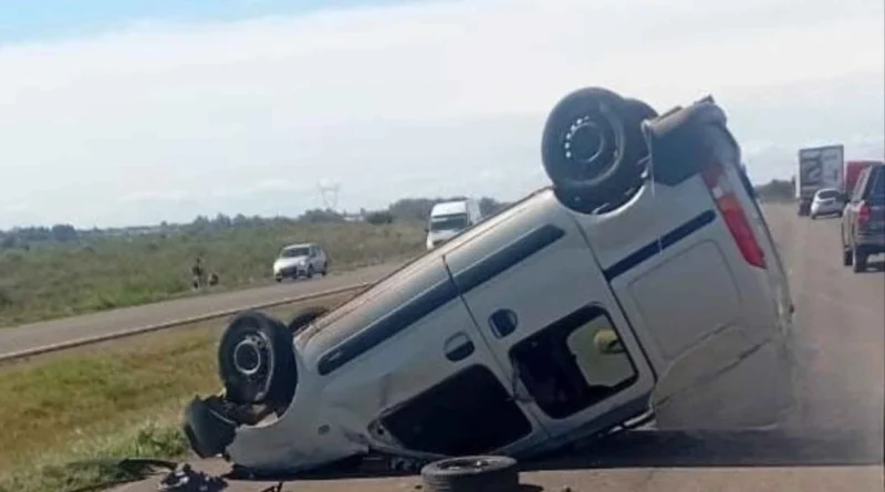 Por causas que se tratan de establecer, un vehículo utilitario que circulaba en sentido sur-norte perdió el control y terminó volcado sobre la cinta asfáltica, quedando con sus ruedas hacia arriba y obstaculizando parcialmente la arteria.