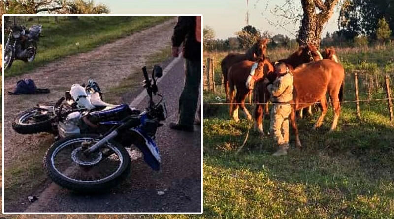 En la mañana de este viernes, dos motociclistas resultaron heridos luego de chocar con un grupo de caballos tras intentar evitar un accidente de tránsito.