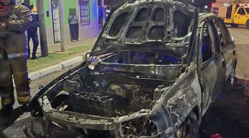 Un automóvil se incendió en plena vía pública en la intersección de calles Juventud Unida y Las Violetas, en la ciudad de Concordia.