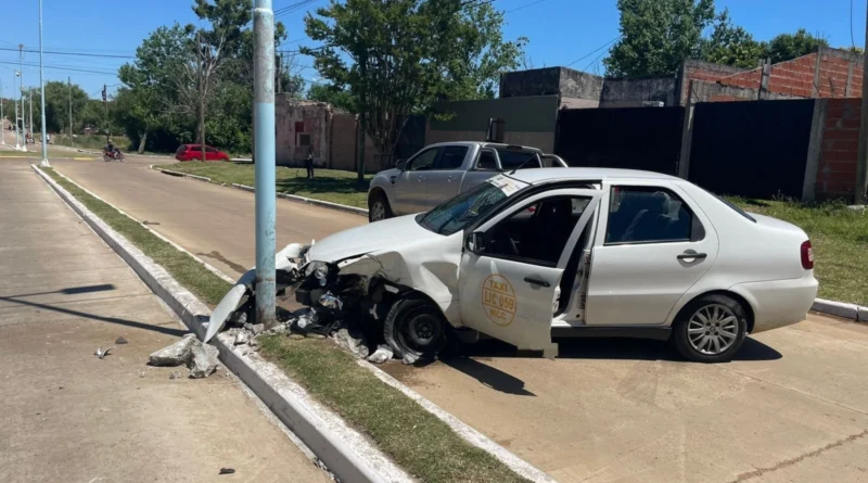 Allí,un rodado – marca Fiat, modelo Siena, identificado como taxi – colisionó contra una columna del alumbrado público ubicada en el cantero central de la calle.