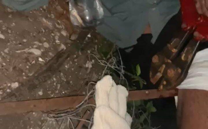 Al llegar, los efectivos encontraron a la víctima tendida en el suelo con una planchuela incrustada en el muslo de su pierna izquierda. Ante la gravedad de la situación, procedieron de inmediato a cortar el elemento metálico —de aproximadamente 2 centímetros de ancho por 2,5 milímetros de espesor— utilizando una tijera corta pernos, logrando liberar al hombre.