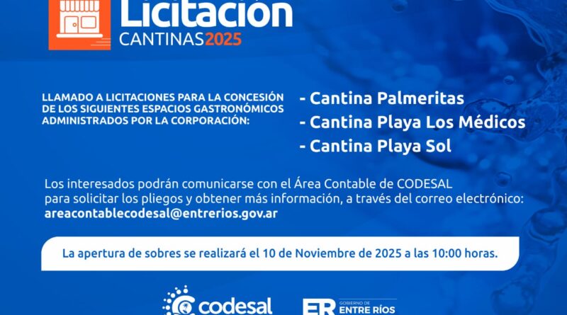 Read MoreLa Corporación de Desarrollo de Salto Grande (CODESAL) informa la apertura del segundo llamado a licitación pública para los siguientes
