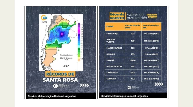 El mes de agosto concluyó con lluvias históricas en Entre Ríos. Según los registros del SMN, la provincia fue una de las más afectadas por el evento que atravesó gran parte del país y dejó marcas inéditas en algunas localidades.