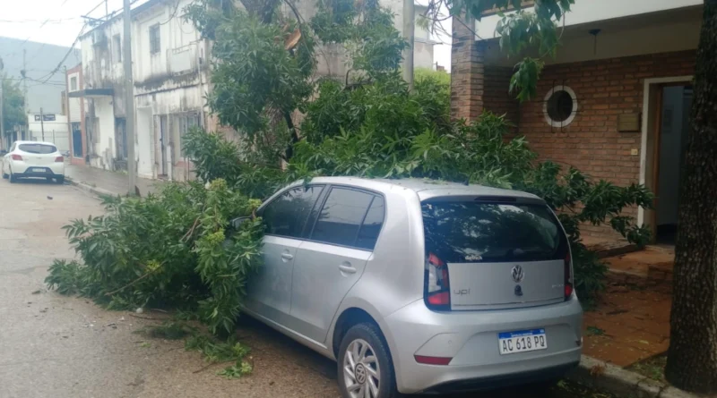 Se trató de un autómovil – marca Volkswagen, modelo UP, de color gris – que estaba estacionado sobre calle Alvear al 1168. La caída de la rama – de importantes dimensiones – produjo daños en el parabrisas, en el capot y también en la zona del paragolpe.