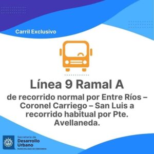 La línea 9 Ramal A, de recorrido normal por Entre Ríos – Coronel Carriego – San Luis a recorrido habitual por Pte. Avellaneda.