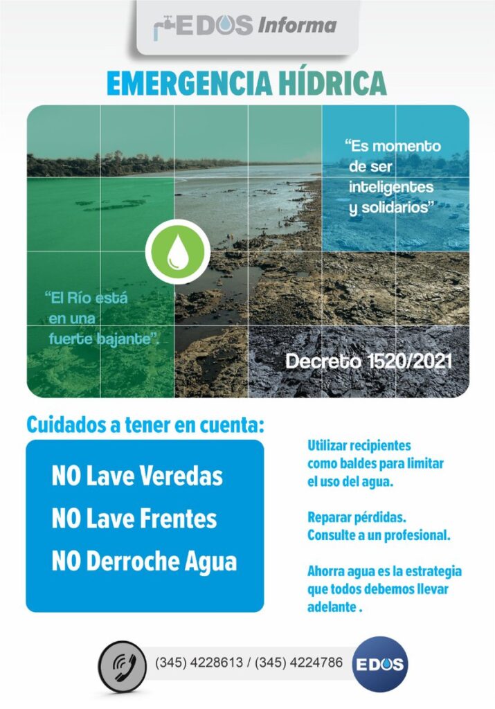 El Ente Descentralizado de Obras Sanitarias (EDOS) recuerda la importancia de extremar el cuidado del recurso del agua y evitar el derroche, sobre todo en las épocas de mayor consumo y de elevadas temperaturas.