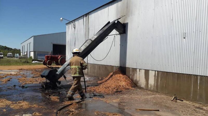Alrededor de las 14 horas de este miércoles, dos unidades de Bomberos Voluntarios trabajaron en un incendio declarado en una industria dedicada a la producción de fibra para bovinos, ubicada en el predio del parque industrial.