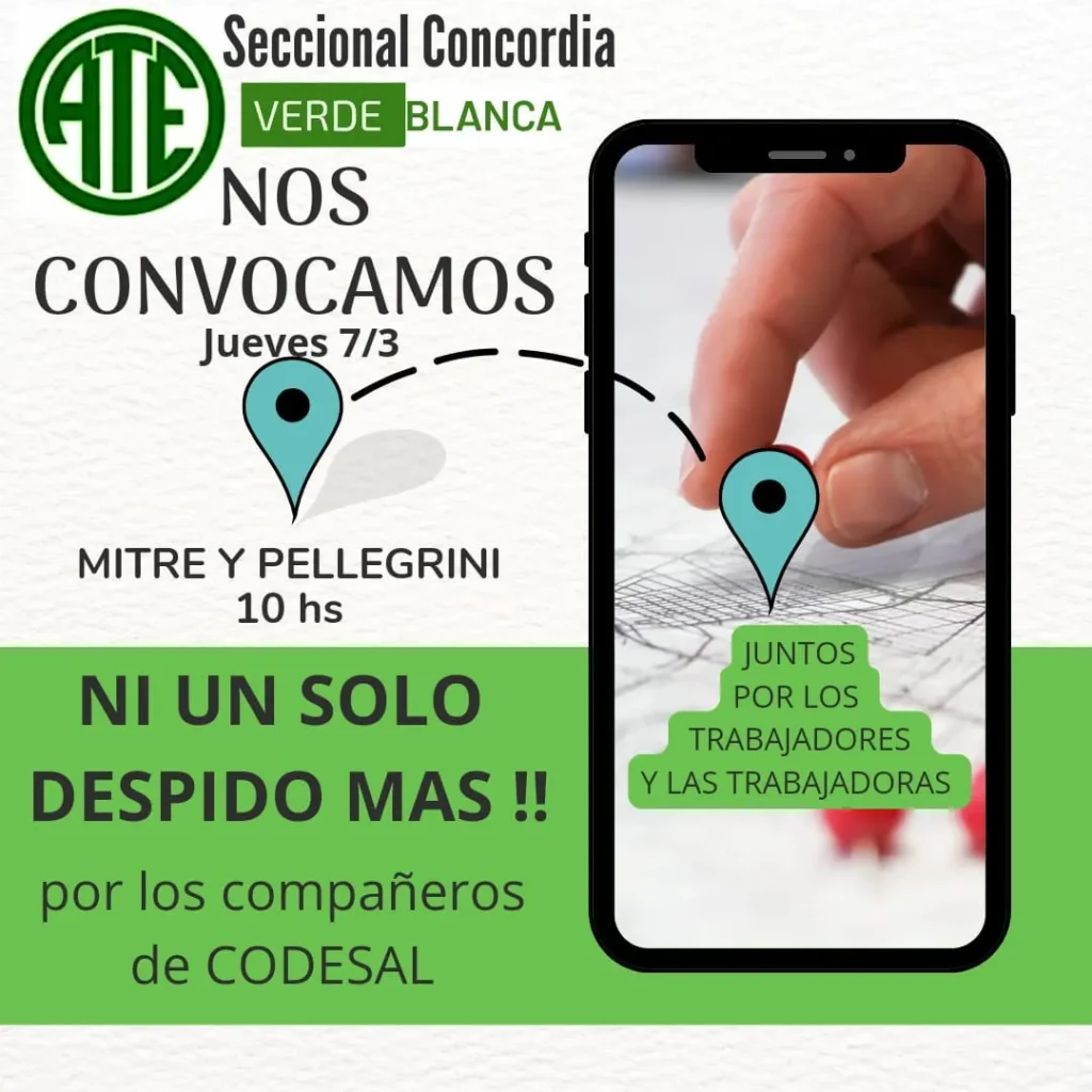 La Asociación de Trabajadores del Estado (A.T.E) seccional Concordia, solicitó al gobernador de Entre Ríos, Rogelio Frigerio, la pronta reincorporación de cinco empleados despedidos de la CODESAL apenas iniciada la nueva gestión.