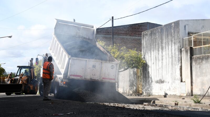 Colado de asfalto en caliente en calles Eva Perón y Morrogh Bernard; San Luis casi Balcarce.