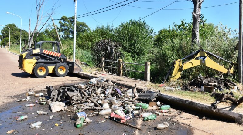 Uno de los sectores en los que se llevaron adelante tareas de limpieza fue sobre calle Cadario, en una de las alcantarillas ubicadas sobre el arroyo Manzores. En el lugar se retiró una importante cantidad de residuos, muchos de ellos domiciliarios.