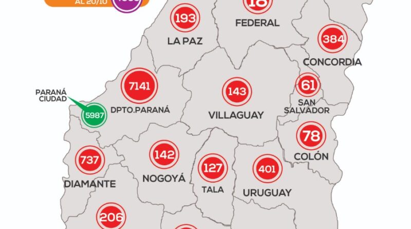 A partir de los datos reportados al 21 de Octubre de 2020 por el área de Vigilancia Epidemiológica del Ministerio de Salud, en Entre Ríos se han sumado 435 casos de Coronavirus.