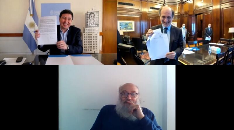Los ministros de Desarrollo Social y de Agricultura, Ganadería y Pesca, Daniel Arroyo y Luis Basterra, respectivamente, acompañados por autoridades
