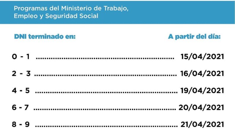 La Subsecretaría de Empleo y Economía Social de la Municipalidad de Concordia informa el cronograma de pago del mes de