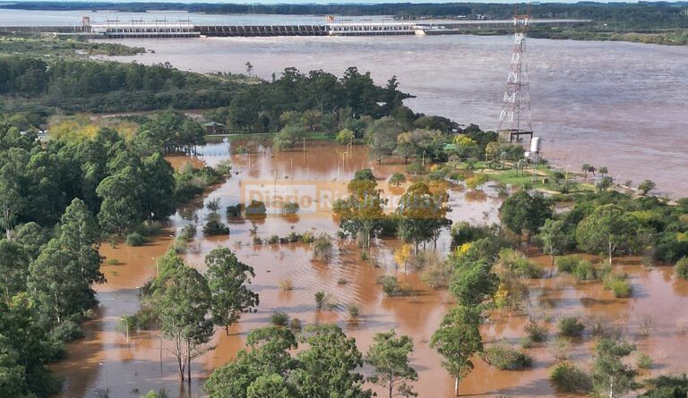 La impactante imagen aérea de la Tortuga Alegre cubierta por el río Uruguay