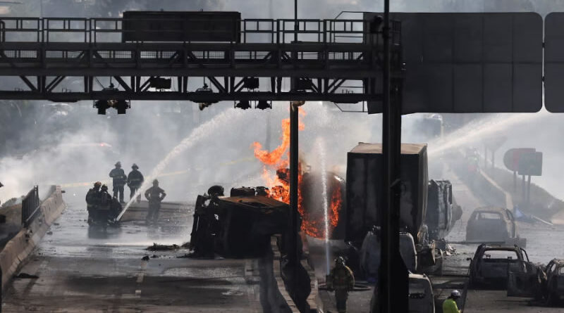 Read MoreEl vehículo volcó en una ruta de Santiago y otros siete autos fueron consumidos por las llamas. Un camión que