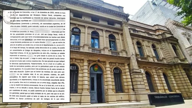 Una mujer de Concordia denunció públicamente que desde hace casi diez años sufre hostigamiento y acoso por parte de un abogado de la ciudad, vecino suyo en el mismo edificio. Según afirmó, a lo largo de este tiempo realizó numerosas denuncias tanto en el ámbito judicial como ante organismos administrativos, pero nunca obtuvo medidas de protección ni respuestas concretas. En ese marco, cuestionó duramente la actuación de la Justicia y del Colegio de la Abogacía.
