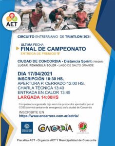 En cambio, con punto de largada en la Península Soler del Lago de Salto Grande, este sábado desde las 14 horas, se llevará a cabo la 5° y última fecha del Campeonato Entrerriano de Triatlón.