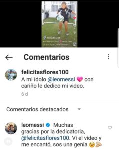 “Muchas gracias por la dedicatoria. Ví el vídeo y me encantó, sos una genia”, publicó Messi desde su cuenta oficial de Instagram, cumpliendo con el sueño de la fanática. El pedido para que esto pudiera llegar hasta la Pulga, contó con más de 16 mil likes y 3000 retweets. Por otro lado, Felicitas compartió la respuesta y agradeció al jugador. “Gracias @leomessi no tengo más palabras para describir mi alegría”, escribió.