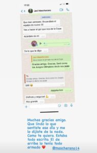 El número 11 de la Selección cobró protagonismo por el tremendo gol que metió y se hizo viral, La premonición de su mujer Jorgelina Cardoso . Pero ella no fue la única que visualizó el gol de Fideo. Hoy, Ángel Di María compartió su chat con Javier Mascherano en el que el ex capitán de Argentina le decía: “Qué bien entraste. ¡Encendiste el equipo de nuevo! Vas a hacer el gol que nos de la Copa. Acordate de mí”