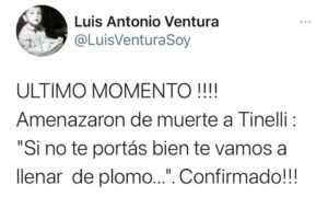 Desde las redes sociales se hicieron escuchar las amenazas, siempre púbicas, que parecieran quedar ahí. Sin ir más lejos, durante el partido Tinelli fue tendencia en Twitter por eso. Sin embargo, según Ventura, lo que recibió en su teléfono fue más allá que el simple “folclore” del que se suele hablar. Eata vez se pasó un límite.
