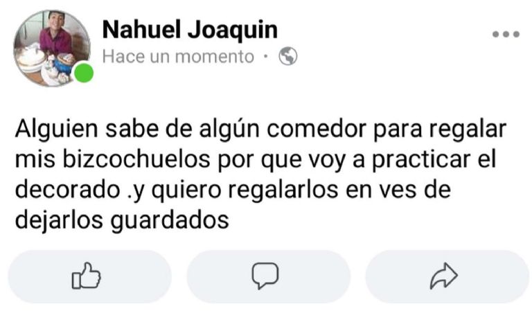 Hace poco acudió a su cuenta de Twitter para preguntar si alguien conocía algún comedor para regalar bizcochuelos. Sucede que empezó a practicar el decorado, y como sabía que los primeros no le iban a salir bien, y no quería vender eso, decidió regalarlos a un lugar en el que sean bien recibidos.