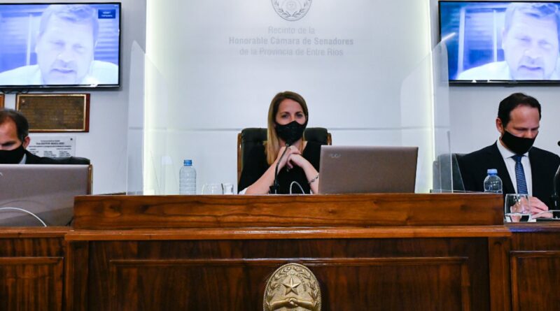 La Cámara de Senadores de Entre Ríos celebró este miércoles la 13º sesión ordinaria del 141º período legislativo. La vicegobernadora y presidenta del Senado, Laura Stratta, presidió el debate desde el Recinto asistida por el secretario Lautaro Schiavoni y por el prosecretario Leonardo Centurión; en tanto que las y los senadores participaron de la sesión vía remota de acuerdo a lo que dictan las medidas preventivas definidas por el Gobierno en el marco de la pandemia por Covid 19.