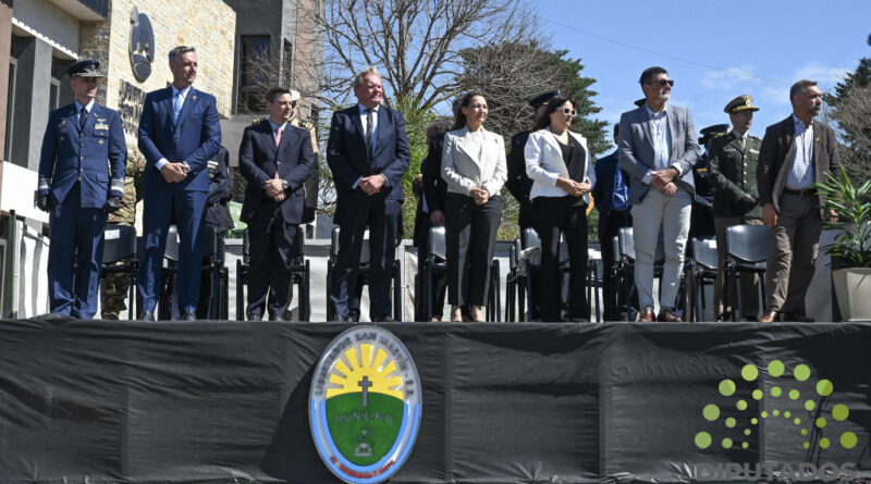 Invitado por el presidente municipal, Darío Heinze, el presidente de la Cámara de Diputados fue parte de la comitiva que encabezó la ceremonia por los festejos de un nuevo aniversario de la localidad diamantina. Participaron el secretario de Justicia, Julián Maneiro, el diputado provincial, Lénico Aranda, la viceintendenta, Claudia Erbes, funcionarios locales, además de representantes de fuerzas de seguridad y religiosas.