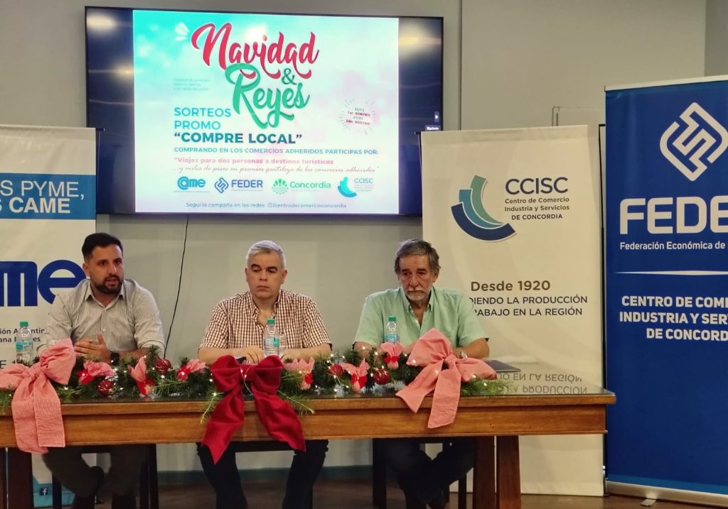 Con el objetivo de incentivar el consumo interno, fortalecer al comercio local y rescatar la tradicional festividad de Reyes, este miércoles se lanzó oficialmente la quinta edición de la campaña promocional “Navidad & Reyes – Compre Local” en la ciudad de Concordia. La iniciativa es impulsada de manera conjunta por la Confederación Argentina de la Mediana Empresa (CAME), la Federación Económica de Entre Ríos (FEDER), la Municipalidad de Concordia y el Centro de Comercio, Industria y Servicios de Concordia (CCISC).