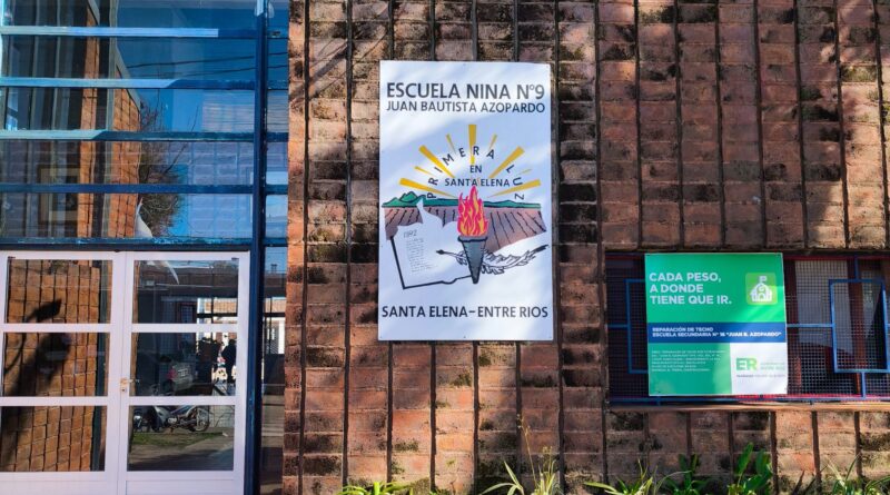 El Ministerio de Planeamiento, Infraestructura y Servicios avanza con trabajos de reparación de la cubierta y la instalación eléctrica en la escuela secundaria Nº 16 Juan Bautista Azopardo, de Santa Elena, donde también funciona la escuela primaria Nº 9 y se encuentra ubicada en la intersección de Belgrano y Dardo P. Blanc.