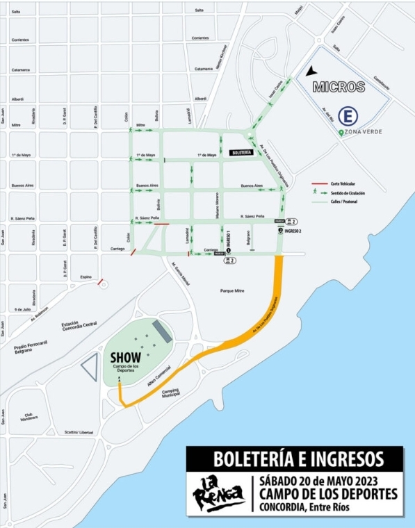 Desde la organización del evento y la Municipalidad de Concordia se recuerdan al público y a la ciudadanía en general algunas informaciones de interés relacionadas con el histórico evento que se realizará este sábado en el Campo de los Deportes.