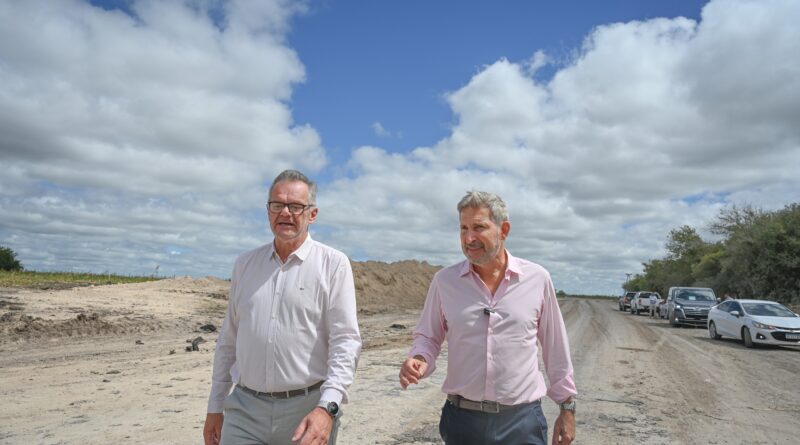El gobernador Rogelio Frigerio recorrió este jueves la obra vial que se ejecuta en el camino que vincula Viale con Arroyo El Durazno, financiada por el Banco de Desarrollo de América Latina y el Caribe (CAF), en el marco del Programa de Caminos para el Desarrollo Productivo de la provincia de Entre Ríos.