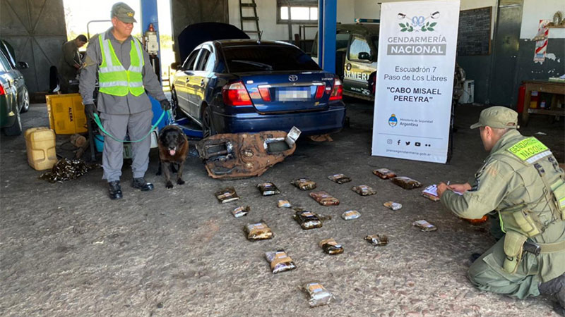 Al momento de la inspección del rodado, “los uniformados contaron con la ayuda del can detector de narcóticos “Teho”, quien al pasar por el sector del tanque de combustible marcó la existencia de estupefacientes”, informó Gendarmería.