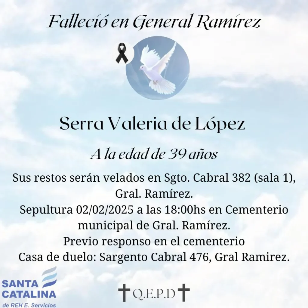 “Invade una gran tristeza otra vez… que descansen en paz Valeria Serra y Román Gabriel López. Ayer te cruce Vale y nos saludamos ibas sonriente. Hoy una noticia terrible de asimilar… lo lamento tanto por ustedes dos niñas hermosas… no existen palabras que expresen consuelo para toda la familia que hoy está de duelo. Que Dios ampare la vida de ambas niñas preciosas… que tristeza”, expresó un usuario en Facebook.