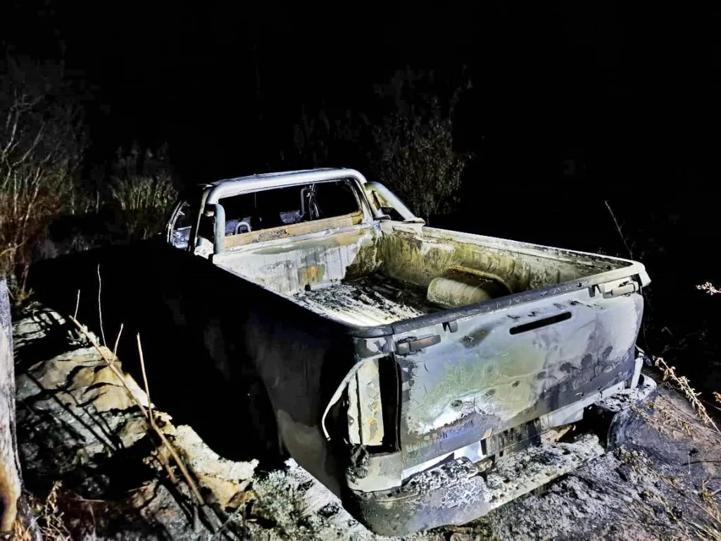 Allí, los uniformados dieron con la camioneta Toyota Hilux que se encontraba totalmente quemada.