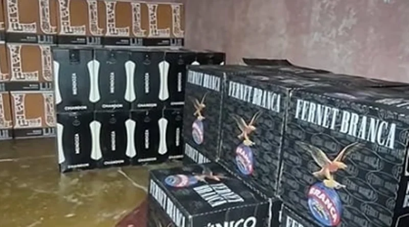 En el lugar, una mujer mayor y un adolescente de unos 15 años recibieron la mercadería, que consistía en 180 botellas de Fernet Branca (750 ml), 126 botellas de vino espumante Lui Brut Nature (Pinot Noir), 66 botellas de Chandon Extra Brut y 60 botellas de vodka Smirnoff, entre otras bebidas.