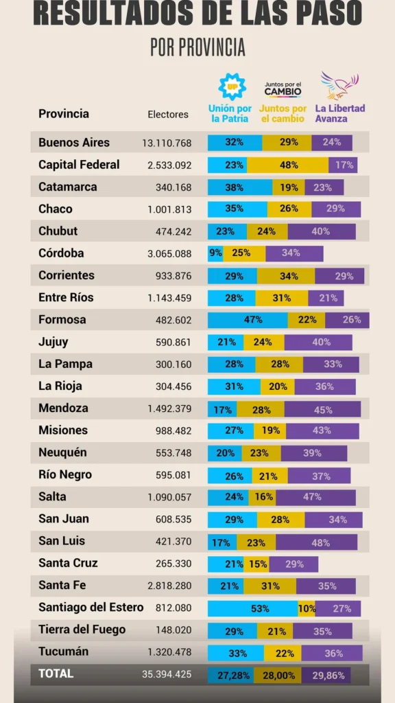 Resultados de las PASO provincia por provincia y el peso electoral de cada una de ellas
