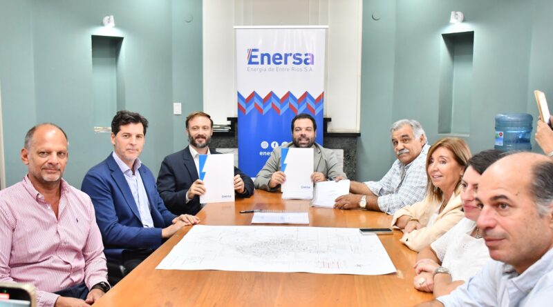 El vicepresidente de Enersa y ministro de Gobierno y Trabajo, Manuel Troncoso, junto al intendente Francisco Azcué, encabezó la presentación del plan de ingeniería y la firma del acuerdo entre Enersa y la Cooperativa Eléctrica de Concordia para avanzar en la Estación Transformadora Sur. Se trata de una obra clave para ordenar el crecimiento energético de la ciudad, potenciar el desarrollo industrial y mejorar la calidad del servicio.
